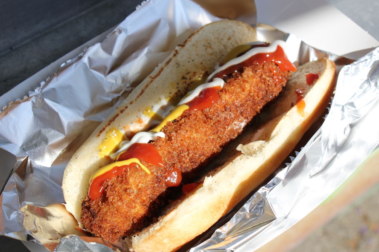 Stop 3: The Go Vegan Truck (or is it the Make Vegan Truck?) was new to me and I still can’t figure out their proper name. The Not Dog ($6) was one of my favorite savory items from the day. Take a vegan dog, batter it, fry it, and serve it up in a hot dog bun. Yum. Their Crispy Schnitzel Cheese Burger ($11) was also good. True to the name, the patty was crispy. It was a nice burger, but if I had to pick one item to order, it would be the Not Dog. I also tried one of their (unlabelled) desserts. I think it was a Chocolate Rugelach ($5), and it was just ok. Slightly sweet, nice texture, but nothing to write home about.