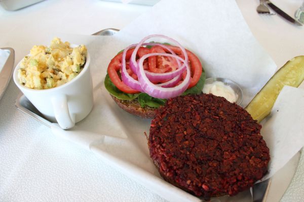 They managed to redeem themselves a bit with the Fried Egg Sandwich ($11.95): fried “egg,” house bacon, cheese, tomato, house ketchup, garlic aioli, seasonal fruit. This sandwich was very tasty, although a bit expensive when you look at what you are getting. Would I wait 50 minutes for this? No. If I lived in the area and called my order in ahead of time, I would definitely get this again, though.