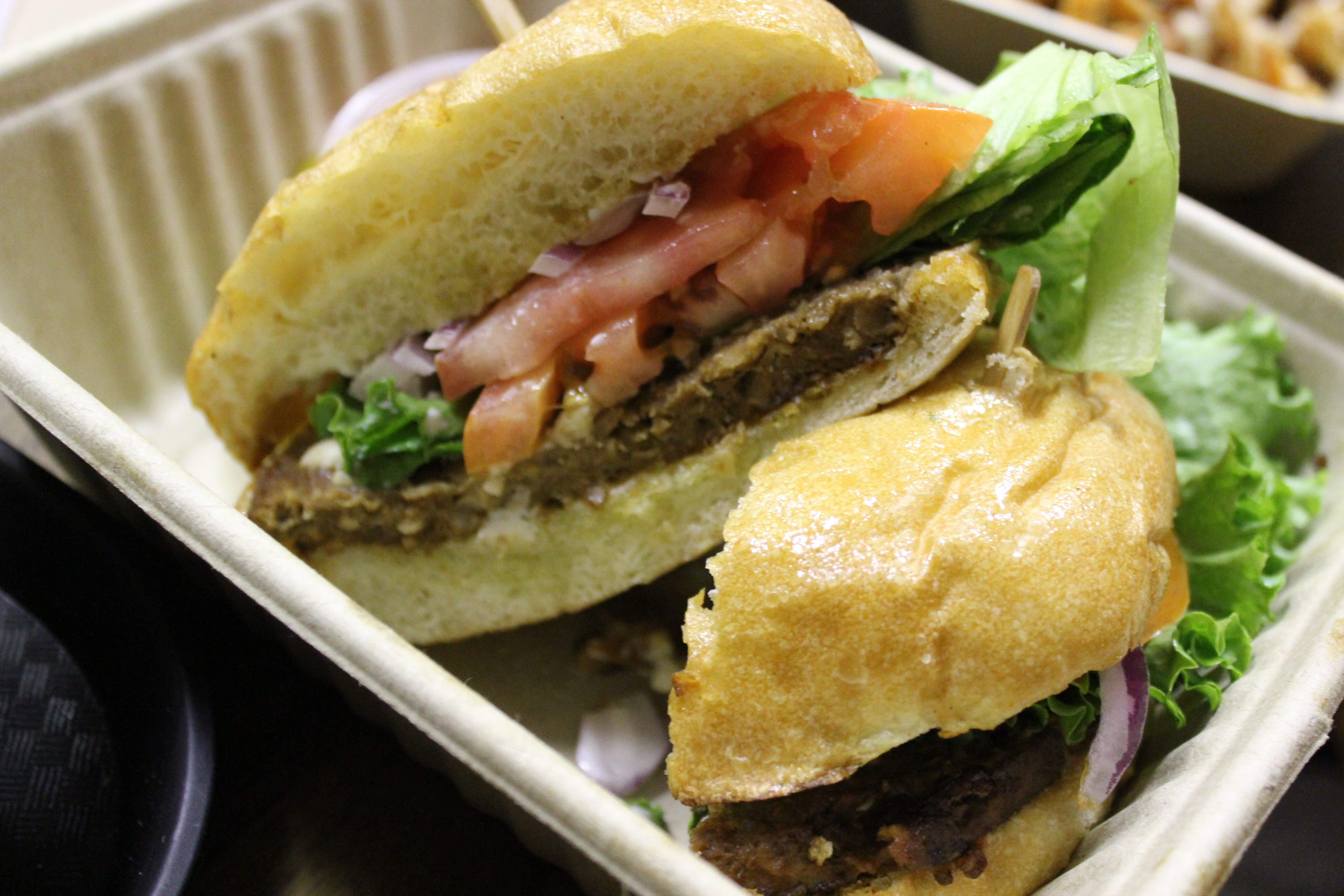 Stop 4: Sabores de Mexico looks like they serve all meat during their normal truck schedule, because they put up some (very hand-made) signs with a special vegan menu for the event.  I really appreciate the effort, but unfortunately, I was not a fan.  I got the Pepperdine Burrito which had rice, beans, pico de gallo, guacamole, Daiya, and tofu.  I thought it was a little bland. Adding Spanish rice instead of plain ol’ white rice might have helped.